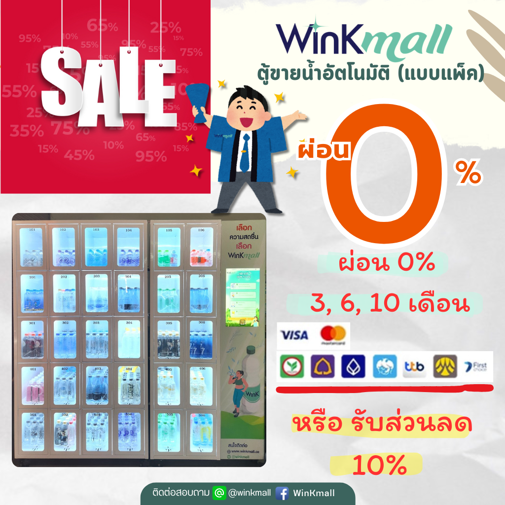 WinKmall Vending Machine คือตู้ขายน้ำอัตโนมัติแบบแพ็ค โดยสามารถขายได้ทุกขนาด และ น้ำดื่มเครื่องดื่มทุกๆประเภท ที่ให้ความสะดวกสบายและโอกาสการลงทุนที่คุ้มค่าในตลาดน้ำดื่มที่กำลังเติบโต ตอบโจทย์ทั้งเจ้าของคอนโด อพาร์ทเมนท์ หมู่บ้านจัดสรร ร้านค้าขายส่งน้ำดื่มและเครื่องดื่ม เจ้าของโรงงานผู้ผลิตน้ำดื่ม และนักลงทุนที่ต้องการสร้างรายได้แบบ Passive Income โดยไม่ต้องมีทีมงานขนาดใหญ่ ด้วยระบบบริหารจัดการอัจฉริยะผ่าน Smart Backend Software คุณสามารถดูสถานะสินค้าและรายงานยอดขายแบบเรียลไทม์ได้จากทุกที่